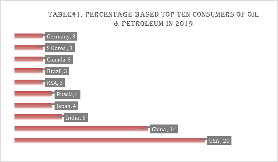 By seeing the above table #1, the Top Ten consumers of Oil and Energy in 2021, it appears that half of the World population (49.1) consumes more than 61 percent of World Oil and Energy resources when compared to the rest of the World population (100 percent).